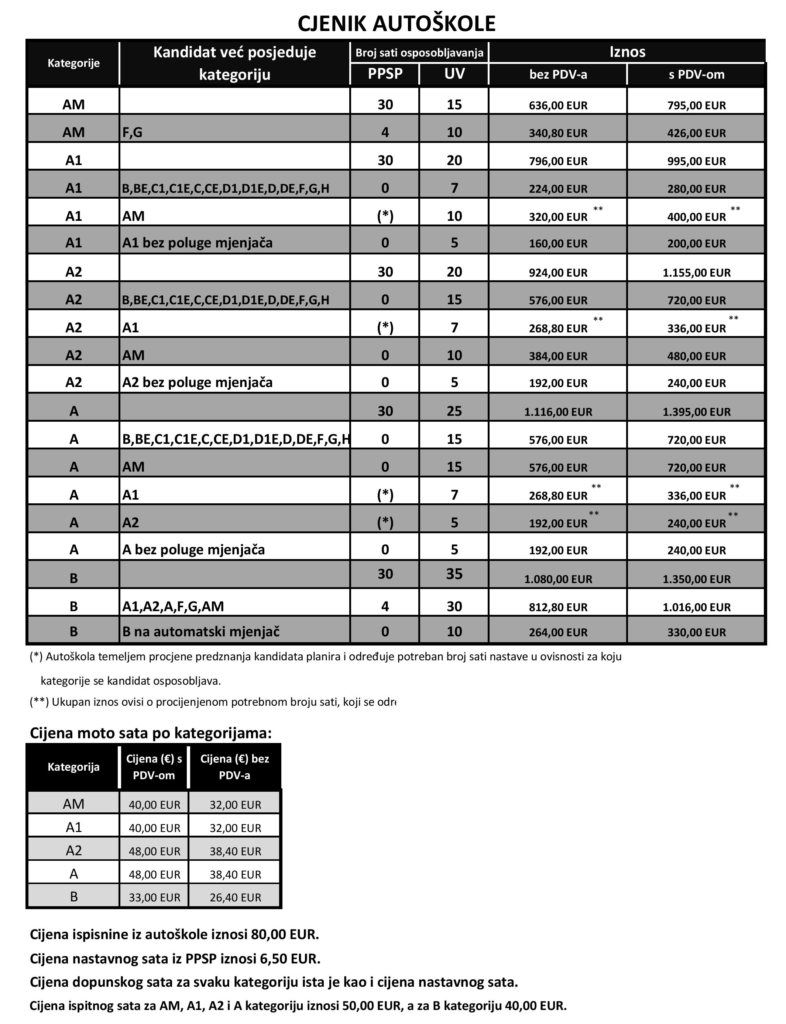 ● 25 sati vožnje (bez posjedovanja drugih kategorija)
